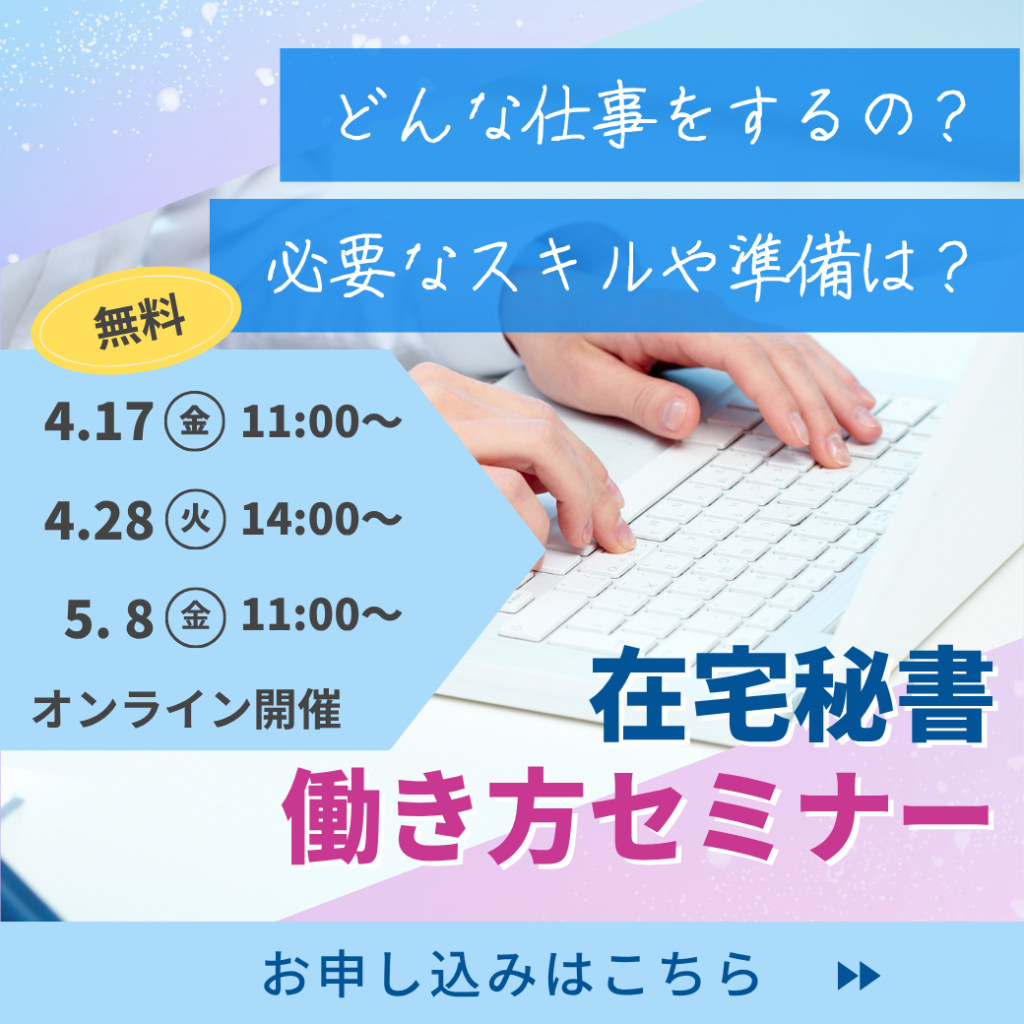 弊社では、「在宅秘書」について理解し、一歩を踏み出していただくべく、無料のオンラインイベントを開催しています。